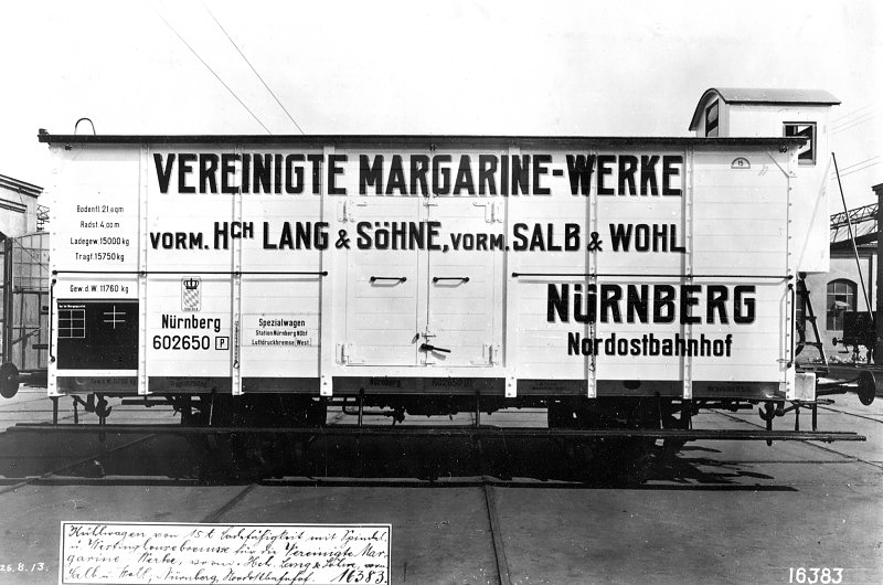 Dieser Kühlwagen mit 4,00 m Achsstand und 15 t Ladegewicht ist schon ziemlich „modern”, obwohl er noch Kupplungen mit Fanghaken hat (Doppelkupplungen). Der Waggon war privat bei der K.Bay.Sts.B. eingestellt, was sich am fehlenden Hoheitszeichen und der dreistelligen Grundnummer zeigt, die mit 602 beginnt (solche insgesamt sechsstelligen Nummern mit 5xx oder 6xx vorne waren stets Privatwagen).